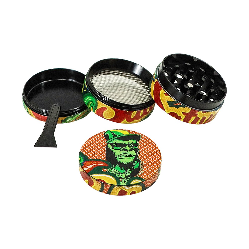 Finely ground material will fall through the mesh screen into the bottom chamber.
